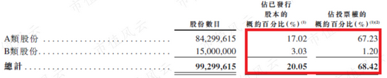 百融云采用AB股制,A类股份,每股10票投票权,B类股份,每股1票投票权,目前唯一持有A类股的是公司实际控制人张韶峰,他合计拥有百融云67.23%的投票权。