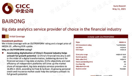 有意思的是,发布正面研报的中金公司和大摩,正好是百融云融资上市的全球联席保荐人。
