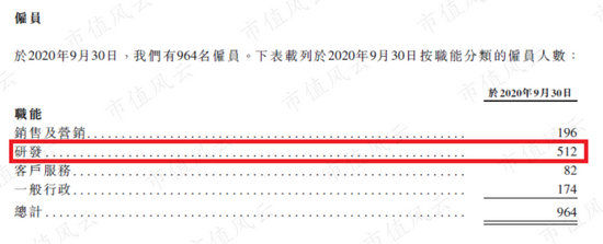 截至2020年9月30日,公司研发人员共有512人,占总员工人数的比例超过50%,是公司最多的一类员工。