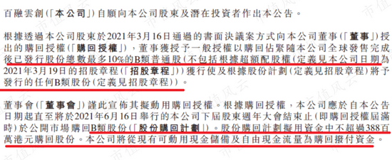 (2021年6月17日《百融云:自愿公告股份回购计划》)