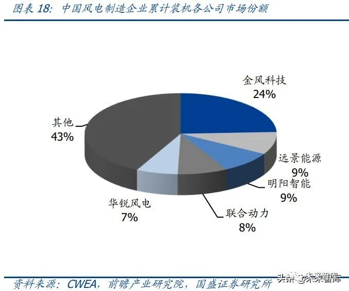 风电整机制造商与投资业主集中度高,风电施工市场大型国企优势较为明显,市场份额较高。风电设备成本在投资中占 50%-70%,占据产业链价值核心,该环节集中度较高。根据 CWEA 的数据显示,截止 2019 年底,中国风电有装机的整机制造企业近 70 家,金 风科技市占率排名第一,达 24.3%,前五大合计市占率 57.5%。投资风电运营的厂商众 多,主要参与者为中央电力集团、中央能源企业、国有地方电力能源企业、民企及外资 等。其中中央电力集团为最主要参与者,据前瞻产业研究院不完全统计,2019 年底中央 电力集团投资风电装机占比 65%左右。参与风电项目施工的企业主要分为中国电建旗下 子公司、中国能建旗下子公司、大型国企旗下公司、主机厂、民企 EPC 公司五个类别, 由于风电投资业主集中在大型发电集团手中,因此大型风电 EPC 项目也基本由央企、国 企及实力强大的主机厂商拿到,而由民营企业投资或者较小型的风电施工市场竞争较为 激烈,民营风电 EPC 企业有更多机会参与。