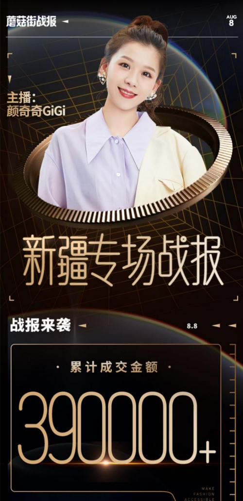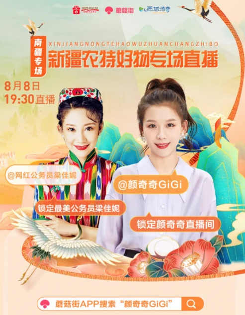 8月8日晚,由蘑菇街和阿克苏市商务局联合打造的新疆农特好物专场直播圆满结束,本次直播有蘑菇街主播“颜奇奇GiGi”和新疆“最美公务员”梁继妮共同主持。蘑菇街通过结合直播电商优势,助力当地优质农特产品行销全国,让全国各地的消费者体验新疆的特色商品。