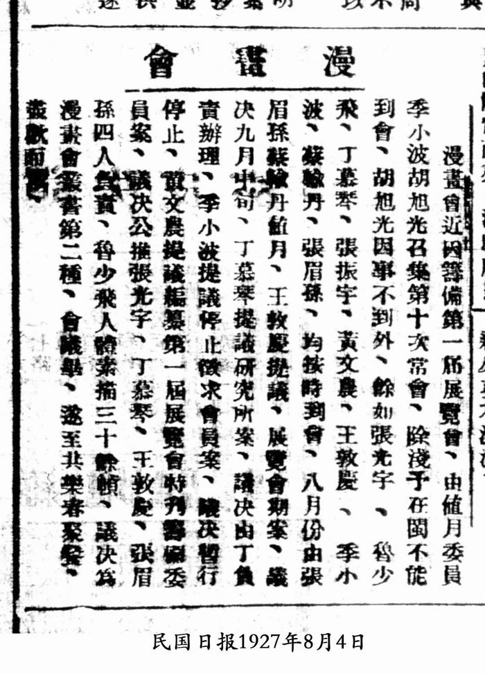 1926年,漫画会成立的当天,上海《申报》在广告版以显著位置刊出《漫画会成立》启事:“