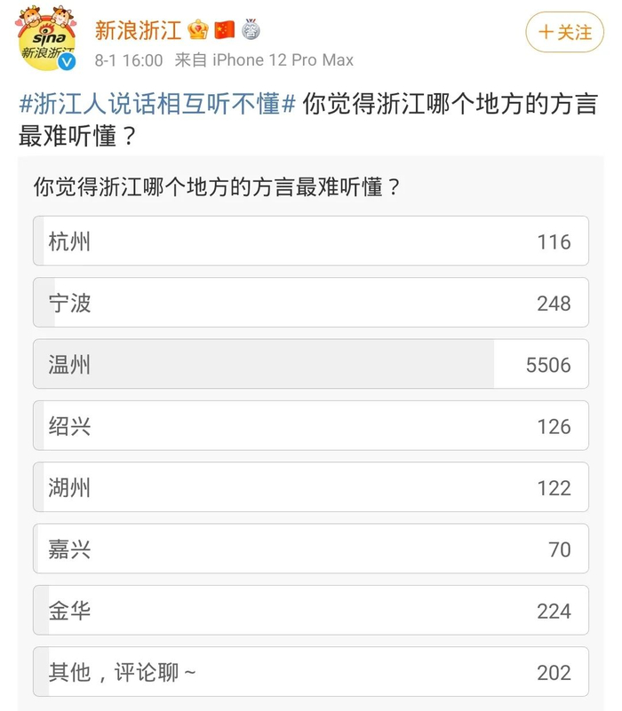 在浙江方言难懂程度评比中高居榜首。