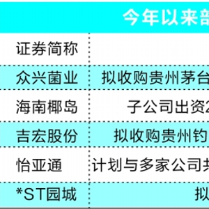 此外,主业为从事食用菌生产的众兴菌业也在今年6月20日公告称,公司拟收购贵州茅台镇圣窖酒业股份有限公司100%的股权。众兴菌业给出的理由是,白酒属于大健康领域,与公司主营业务相似。一旦收购成功,公司会进入白酒与食用菌双主业发展的阶段。