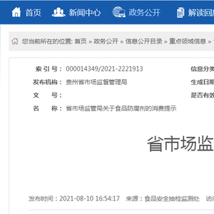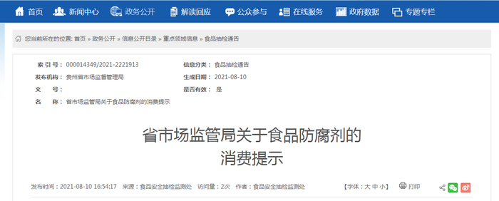 贵州省市场监督管理局发布关于食品防腐剂的消费提示