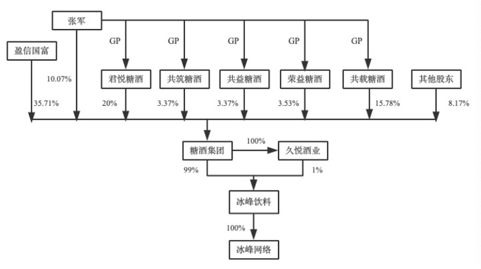 冰峰饮料自2006年国有资本退出后,就形成了股权结构单一的局面,控股股东糖酒集团持股比例为99%。而其中张军控制的糖酒集团56.12%的股权以及91.83的表决权,为公司的实际控制人。