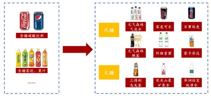 茶饮品的“备受青睐”与碳酸饮料的增速下降形成“鲜明对比”,这或许与消费者日益对健康的需求的注重度有关。健康和瘦身经济下,降糖成为中国市场饮料消费的结构性趋势,消费者对糖分摄入愈发谨慎。饮料含糖量高低已经是消费者购买与否的重要考量因素,消费正由传统的含糖碳酸饮料、茶饮料、果汁饮料转向“无糖化”饮料,例如零度可乐、元气森林、无糖乌龙茶、包装水等产品转化。