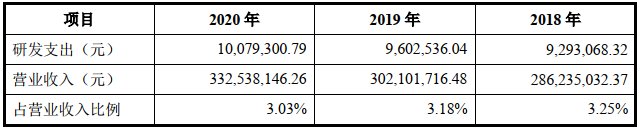 报告期内,冰峰饮料研发支出930万元、960万元、1000万元,虽保持增长但体量不小、增速缓慢,且占营收比例持续下滑,2018年-2019年分别为3.25%、3.18%、3.03%。