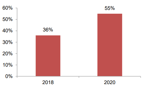 此外,从渗透率方面也可看出消费者对含糖饮料的消费观发生了结构性变化。2020年,有55%的消费者购买过无糖或减糖包装饮料,相比2018年大幅提升19%。且根据《糖烟酒周刊》显示,2017年至2019年,碳酸饮料中,无糖品类份额由2.2%增加至6.2%;茶饮料中,无糖品类份额由2.4%提升至4.7%,体现了消费者对健康关注度的提升,饮料消费意愿向无糖品类倾斜。