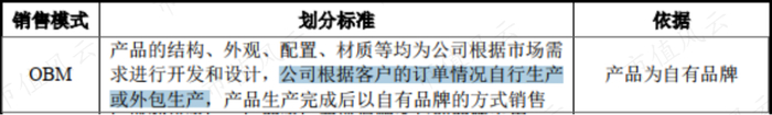 按照业务订单来源,久祺股份采取了ODM模式为主,OBM模式为辅,少量OEM模式的经营模式。ODM和OEM主要是给他人代工,区别主要是否参与设计和研发;OBM即自主品牌研发、设计、生产、销售。