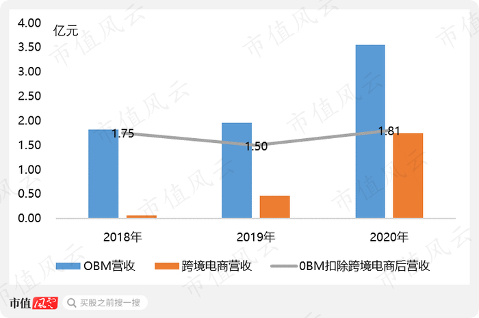 跨境电商业务同样还是久祺股份0BM业务增长的主要原因,如果剔除跨境电商业务营收增长后,过去三年营收几乎不增长。