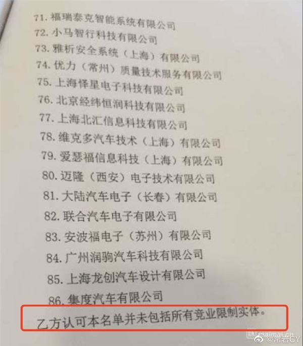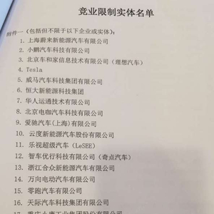 日前,有网友上传的一组,疑似长城汽车制定的竞业限制协议所列企业名单的图片。