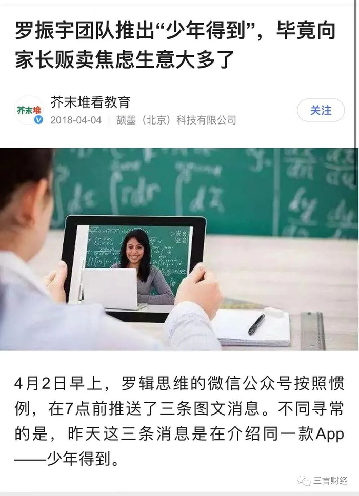 早在2018年时,就已经有媒体报道罗振宇开始向家长“贩卖焦虑”了。