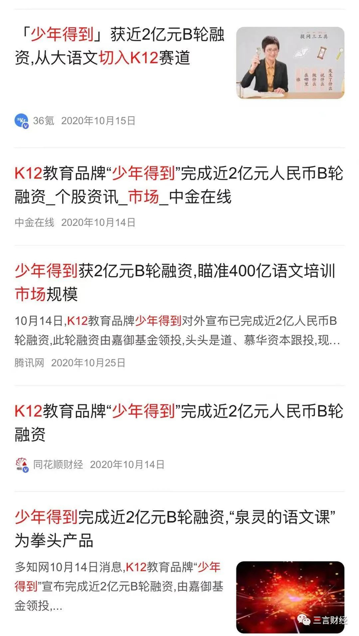 多家媒体也曾纷纷报道过少年得到完成近2亿B轮融资事件,少年得到已成为在线教育赛道中重要的玩家之一。