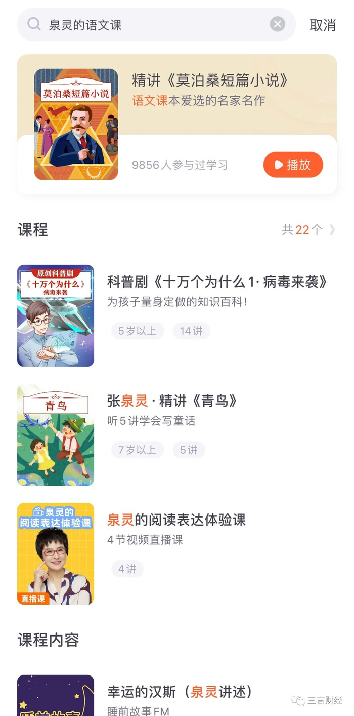 还有报道显示,少年得到的热门产品“泉灵的语文课”已经完成了从幼升小到五年级的研发,这同样说明其平台是对标学校教学。