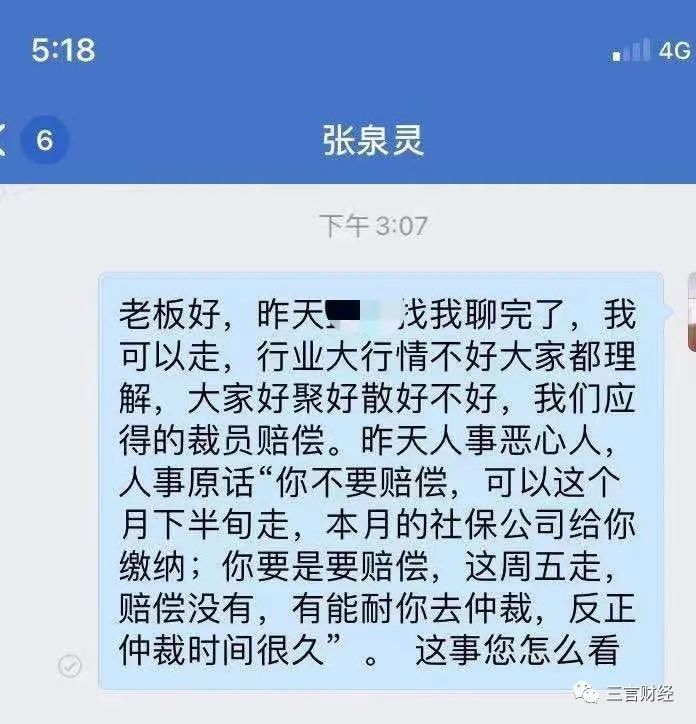 8月5日,曾有员工私聊少年得到董事长张泉灵称,公司HR竟扬言如果员工要赔偿,直接周五离职,“有能耐你去仲裁,反正仲裁时间很久”。
