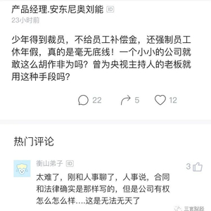 还有网友表示,少年得到HR竟然公然无视合同和劳动法规,不给予裁员补偿。