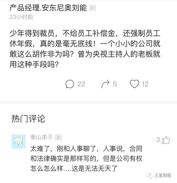 除了上面这位员工,三言财经也采访到另一位已经同意签协议离职的少年得到员工。
