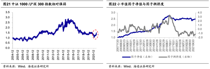 同时,根据海通金工因子拥挤度模型,截至2021.07.30,小市值因子的拥挤度为-1.19,处于历史较低水平。我们认为,小盘股当前具备较高的配置价值。