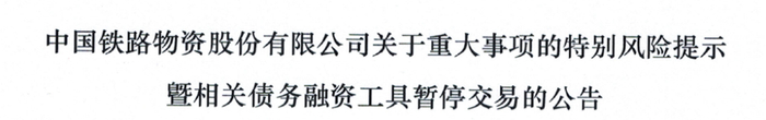按照银行间交易商协会有关规定,2016年4月11日,中国铁物在债券市场发布了关于重大事项的特别风险提示公告:公司9期共计168亿债务融资工具暂停交易,其中包含了100亿元的私募债(PPN)。市场一片惊慌,尤其是债券持有人把当天称为黑色星期一,称中国铁物为“铁公鸡”。实质性的影响也是很大的,当月就有一百多只央企的各类债券发行受到明显影响,发行失败或中止金额达到1200?亿元。如果中国铁物无法在短期内处理好债务风险问题,后果不堪设想。有关部门通过各种渠道向最高层汇报了这一情况,并引起党中央、国务院领导的高度重视。4月29日,国资委决定由中国诚通集团对中国铁物进行托管,成立了中国铁物管理委员会。
