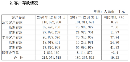 湖北银行的资金来源主要为客户存款,截至2020年末,总存款占总融资的比例为78.93%,较年初上升1.51个百分点。