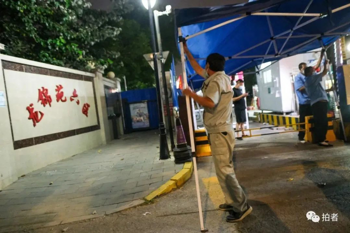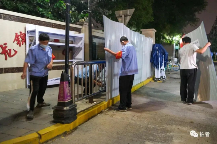 ▲8月11日23时许,龙锦苑六区,工作人员正在为12日零时解封做准备。