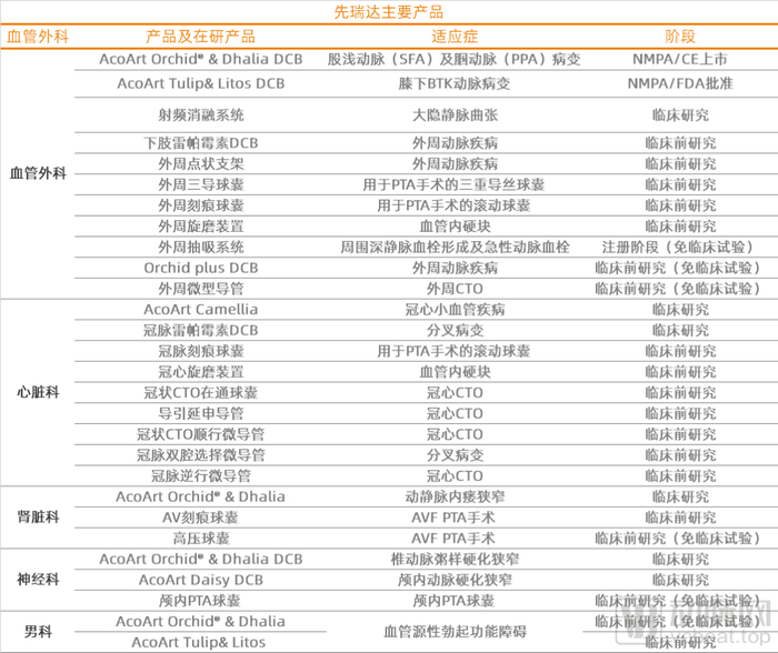 2016年,先瑞达的核心产品适用于股浅动脉(SFA)及腘动脉(PPA)病变的AcoArt Orchid® & Dhalia™获批,成为首款获国家药监局批准上市的外周DCB产品。在此后的三年后,先瑞达的膝上DCB球囊都是独家单品。2020年,多家国内外企业的同款产品才陆续获批上市。