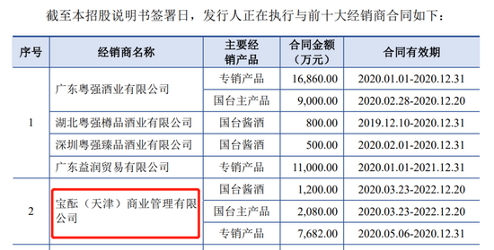 由于这款产品在2020年秋天刚刚上市,因此相关的经营数据尚未在招股书中体现,仅披露了一个经销商合同,金额约为1.1亿元。而招股书中国台提及的主产品仍然是国台国标酒、国泰十五年和国台龙酒等。