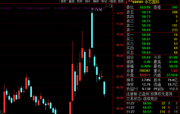 Wind数据显示,截至午间收盘,半导体指数下跌2.55%;富满电子大跌7.17%,午间收报115.8元,最新市值237亿元。其他半导体公司也同步下跌,兆易创新、立昂微跌逾7%,中芯国际跌逾5%。