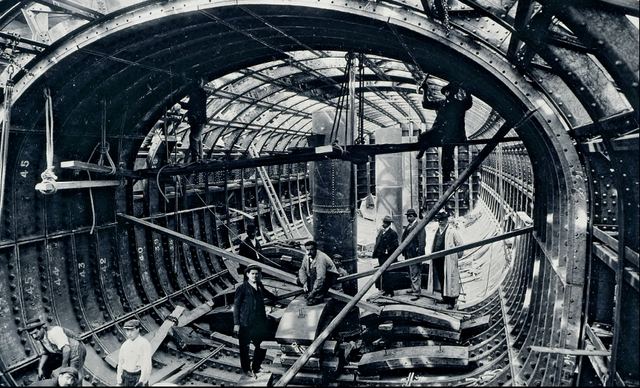 1904年至1909年,塞纳河4号线河底隧道工程建设中。
