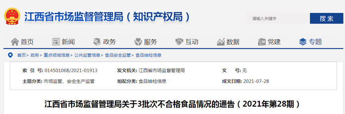 中国质量新闻网讯 近日,江西省市场监督管理局发布的2021年第28期食品抽检信息显示,本次抽检粮食加工品72批次,合格72批次。