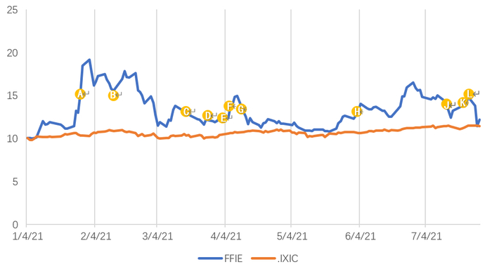 资料来源:FFIE,IXIC股价