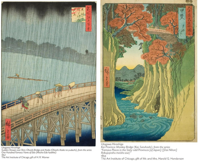 左:歌川広重《暴雨》 右:歌川広重《Kai省:猴子桥》,现藏于芝加哥艺术博物馆