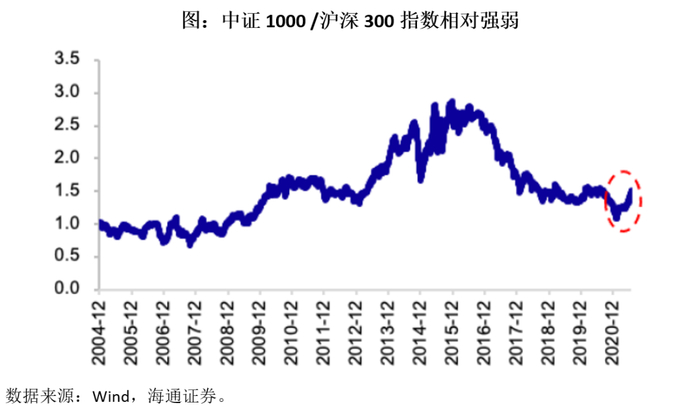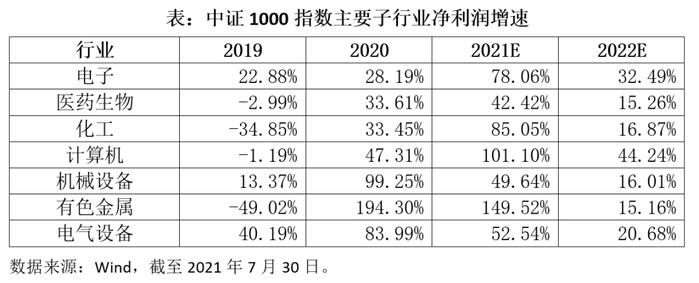 本轮盈利周期在时间和空间上都没走完,担忧盈利见顶为时尚早。从历史经验来看,在经济复苏和盈利上行周期中,中证1000指数所代表的小盘股往往能够获得更高的业绩涨幅。随着盈利的继续回升,中证1000的利润增速有望继续领先。