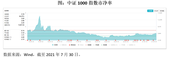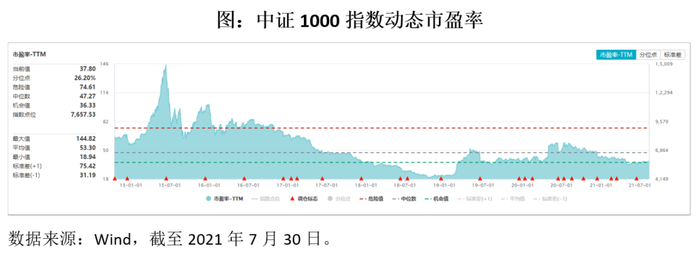 截至2021年8月12日,中证1000指数动态市盈率为37.80倍,位于指数发布以来26.20%分位水平;市净率为3.10倍,位于指数发布以来56.37%分位水平;指数整体估值处于历史中低位水平。