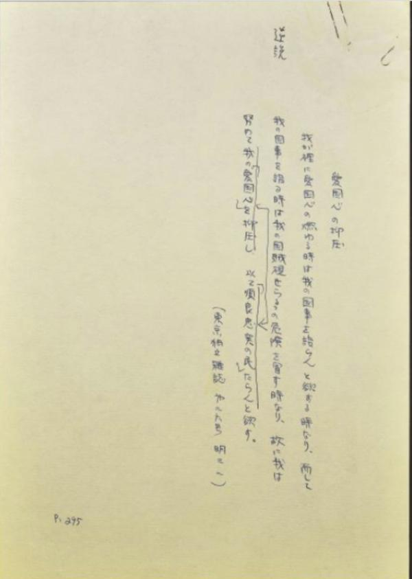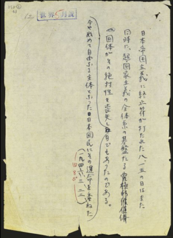 丸山论文《超国家主义的逻辑与心理》手稿封面