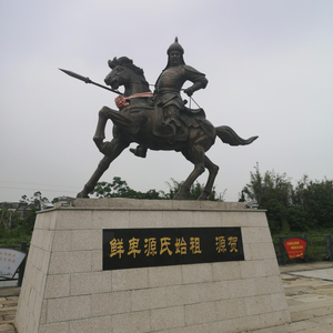 跟随指引,沿村路前行,不远处便是前几年落成的霄南文化广场。青石板地面上立着一尊跃马挺枪的雕像,下刻“鲜卑源氏始祖——源贺”。