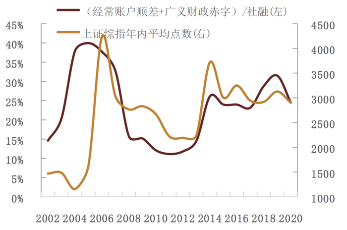 根据上文的讨论,今年财政赤字(对应国债和一般地方债)和政府性基金赤字(对应专项地方债)大概率不会用足。我们此前多次提到的一个宏观分析框架,实际经济的资本回报=(经常账户顺差+广义财政赤字)/当年新增社融。如果把国内所有企业和所有居民捆绑起来作为一个实体经济。那么实际经济的利润来源不是内部互相赚钱,因为这些只是内部的利润转移,利润来源是实际经济外部的海外经济体和国内的政府。即实际经济真正的利润是获取海外利润和国内财政支持。分别对应经常账户顺差和广义财政赤字。前者意味着实体从海外赚得的利润,而后者则是实体从政府赚取的利润,实体经济的盈利除以当年新增社融(当年实体经济的融资)可以较好地衡量实体的资本回报。历史上来看,资本回报能力指标与经济活力和股市活力情况高度相关(图14)。今年面临的情况是,实体的盈利和社融都在收缩,但是实体盈利的收缩可能更为明显,因此资本回报可能将回落。