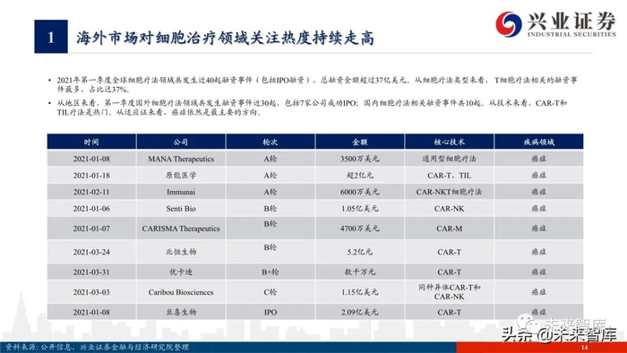 海外市场对细胞治疗领域关注热度持续走高