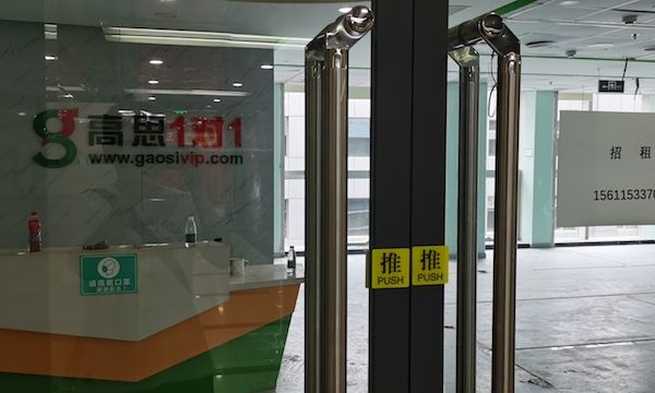 3层的高斯1对1已经搬空,透过玻璃门,空空如也,地面也落了一层灰。只剩下前台处的“高斯1对1”标志的,门上贴着招租的联系方式。“高思教育7月底就退租了。”该大厦负责人说到。