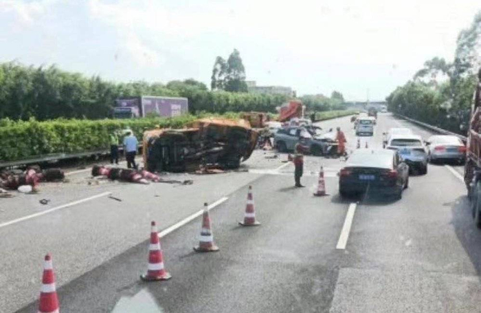 从网络上流传的现场图来看,这辆ES8先撞上了路边的桩桶,随后高速撞击快车道上的一辆高速公路养护车,巨大的冲击力还导致公路养护车侧翻。同时,有当地网友表示,事发地点限速为120公里/小时。