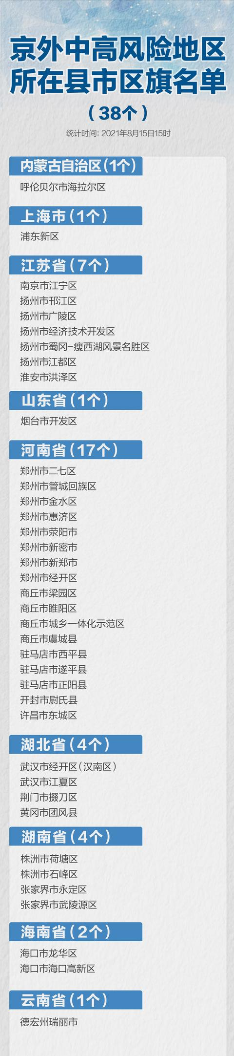 8月15日降为低风险地区名单: