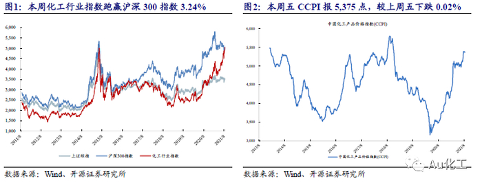 2.1、本周化工行情跟踪:化工行业指数跑赢沪深300指数3.24%
