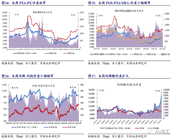 4.1.1、石化产业链:产品价格与价差涨跌互现