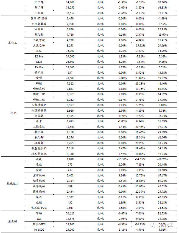 本周化工行情跟踪及事件点评:化工品价格涨跌互现
