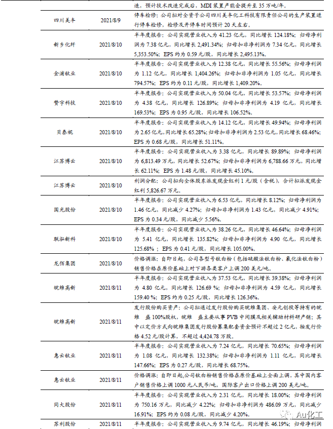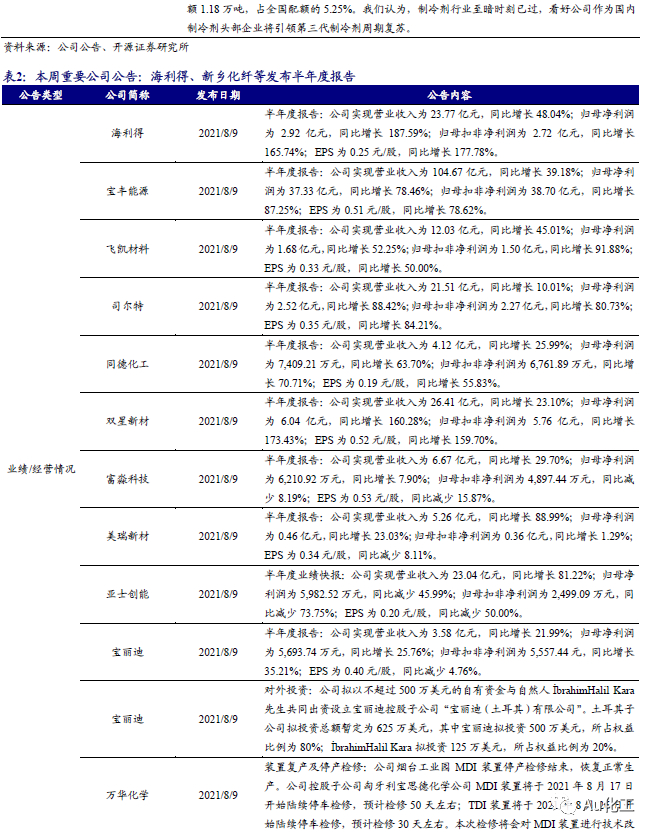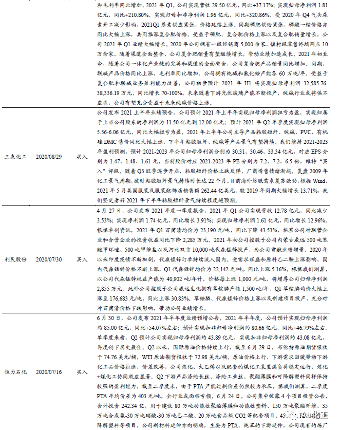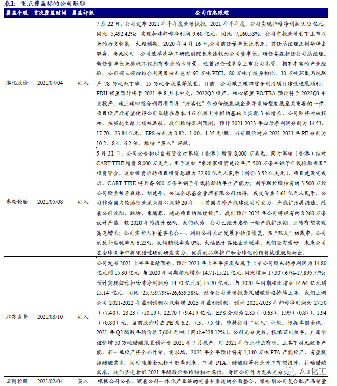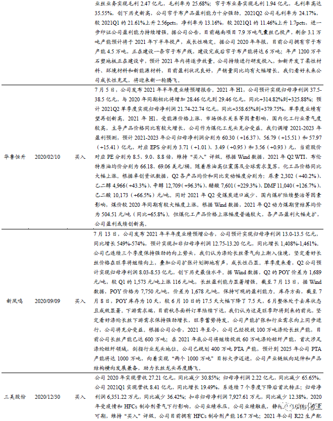 1.1、覆盖个股跟踪:海利得发布半年报,继续看好万华化学、恒力石化、三友化工、新凤鸣、滨化股份、赛轮轮胎等