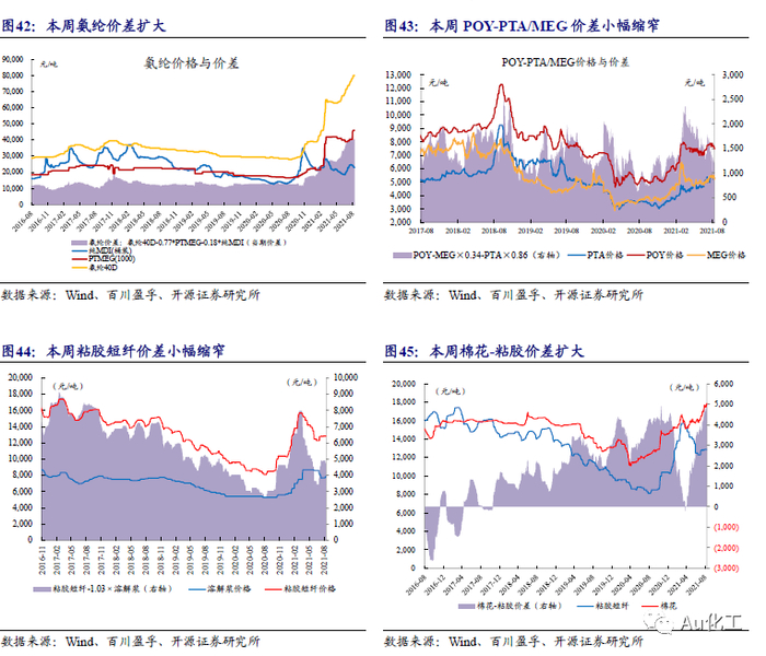 本周(8月9日-8月13日)氨纶、棉花-粘胶短纤价差继续扩大。