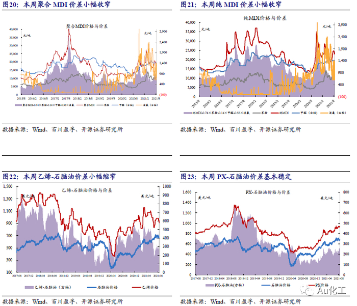 本周(8月9日-8月13日)受原油价格波动影响,多数石化产品价差小幅缩窄。