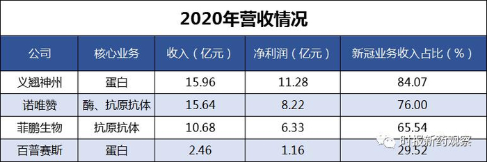 新冠疫情为这几家IVD原材料国产厂家带来了新的发展机会。去年,义翘神州营收激增近8倍,其中新冠相关产品收入达到13.42亿元,占当期营业收入的比例为84.07%;诺唯赞去年营收增长近五倍,新冠疫情相关产品占业务收入的76%;菲鹏生物去年营收增长2.7倍,新冠产品贡献近7亿元收入,占比近70%。